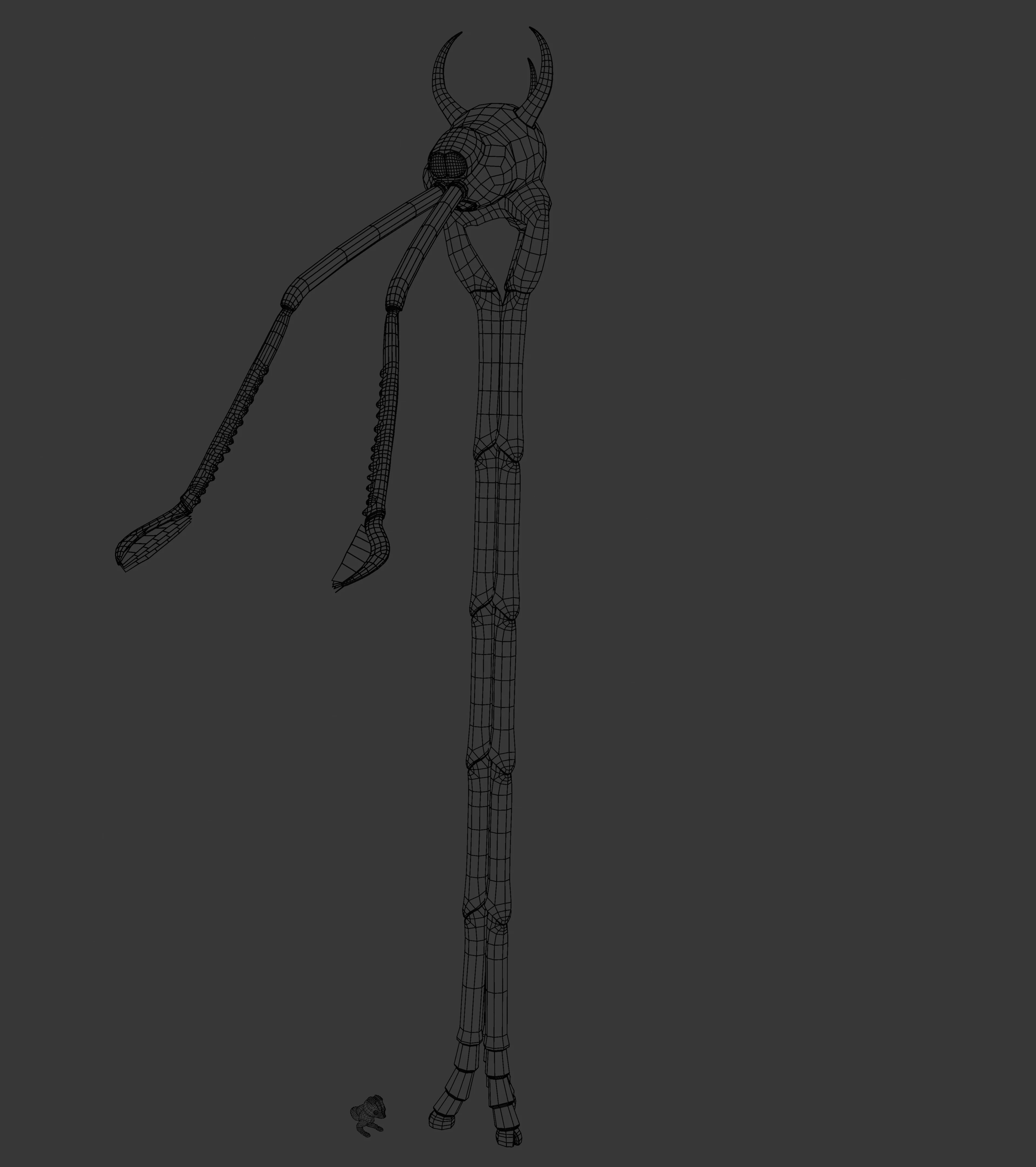 The stilting sneer is an enemy within the world of Skitter Skritter. The design of the model is based on the harvestman, a spider like animal that typically has abnormally long legs and no body segments. The legs of the stilting sneer is colored to look like bamboo, potentially catching the player off guard upon approach. The size of this creature, shown in comparison with the skritter gummy, is massive in scale. The main body of this creature being so far from the ground will require more than brute force to conquer.